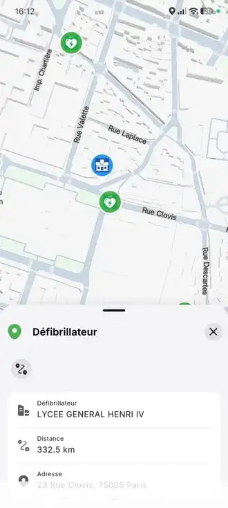 Commissariats, hôpitaux, défibrillateurs et Safe Places partenaires sont visibles instantanément pour te guider vers la meilleure option.